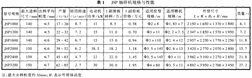 JSP細碎機規(guī)格與性能