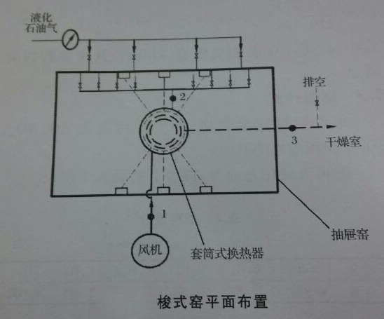 位于回轉(zhuǎn)窯冷空氣管道位置1開(kāi)設(shè)Φ8毫米的測(cè)試孔,用標(biāo)準(zhǔn)畢托管測(cè)量助燃空氣流量,查看鼓風(fēng)機(jī)頻率顯示。預(yù)熱空氣管道2開(kāi)設(shè)Φ8毫米的測(cè)試孔,用鉑電阻溫度計(jì)量空氣預(yù)熱溫度。而回轉(zhuǎn)窯的中溫?zé)煔夤艿牢恢?開(kāi)設(shè)兩個(gè)Φ8毫米的測(cè)試孔,用鉑電阻溫度計(jì)測(cè)量煙氣離窯溫度,用testo360煙氣成分檢測(cè)儀在線監(jiān)測(cè)煙氣內(nèi)的一氧化碳和氧氣濃度。用鉑電阻溫度計(jì)測(cè)量車(chē)間環(huán)境溫度;剞D(zhuǎn)窯的燃料供應(yīng)管上安裝渦街流量計(jì)測(cè)試液化石油氣的具體流量,安裝壓力表對(duì)液化石油氣的壓力進(jìn)行測(cè)量。窯溫借助抽屜窯配套的溫度自動(dòng)檢測(cè)及顯示系統(tǒng)測(cè)試。
