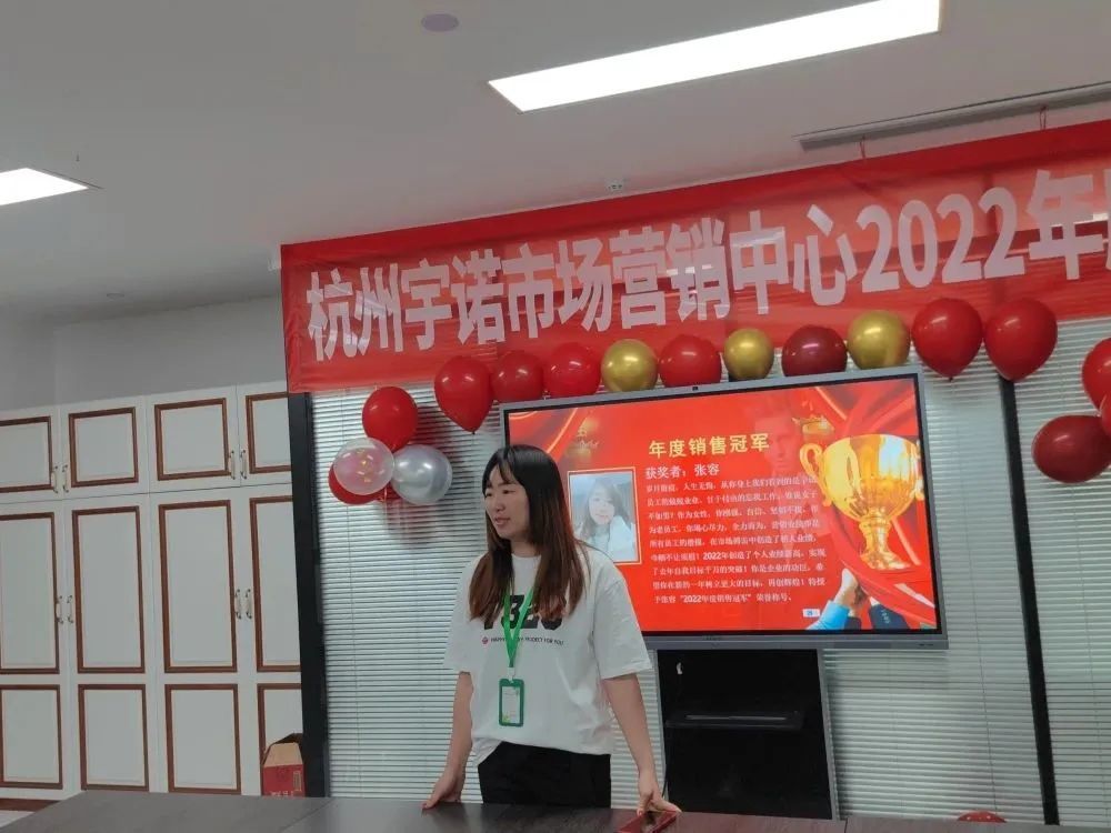 年度銷售冠軍張容上臺發(fā)言,從一名新員工到如今的年度銷售冠軍,她表示能取得如此的成績,正是因?yàn)橛钪Z科技提供了她發(fā)展的舞臺,她為能進(jìn)入宇諾遇到韓董事長這個(gè)伯樂而倍感榮幸。